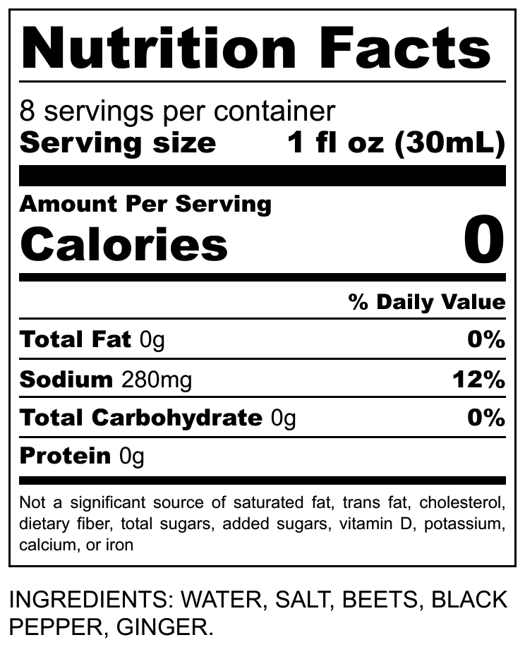 Water, Salt, Beets, Ginger, Black Pepper.